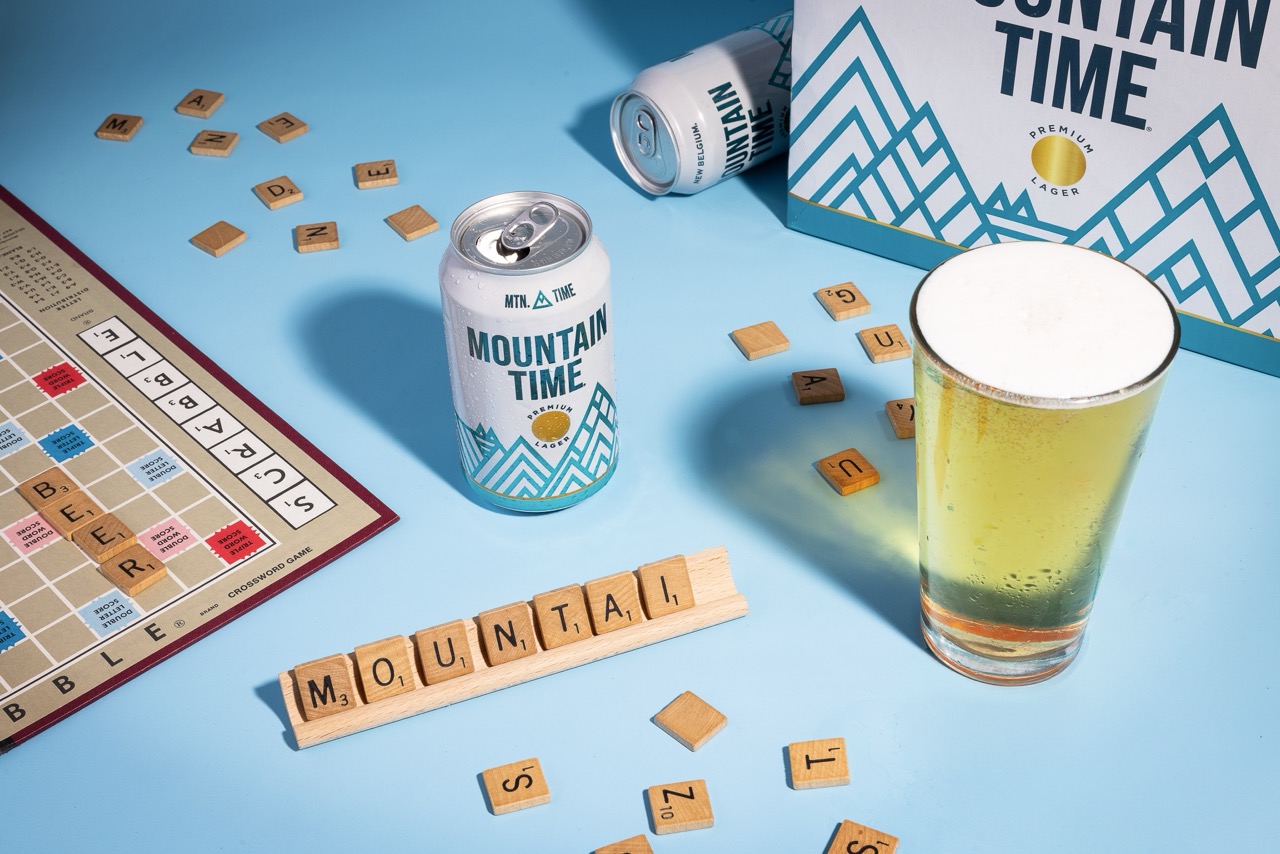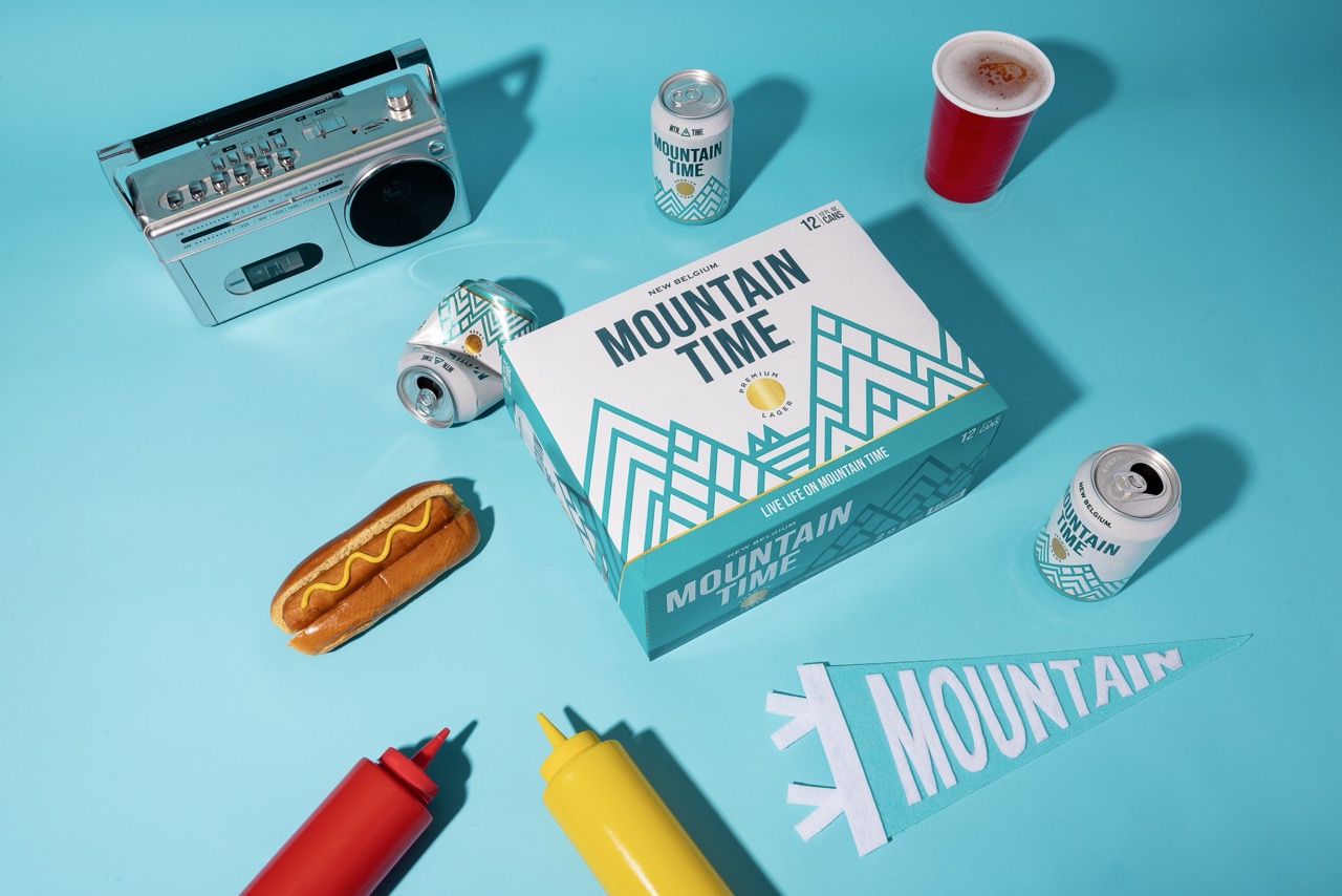 Create a series of photo assets that showcase Mountain Time Lager in a variety of settings.