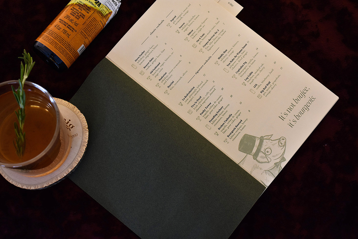 Playing off of common tropes of what it means to be a fancy member of the bourgeoisie, the use of vintage inspired illustrations & playful copy results in a brand that feels luxurious while still remaining attainable & comfortable for the average bourgeois patron.